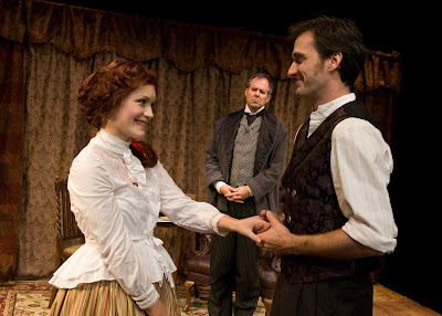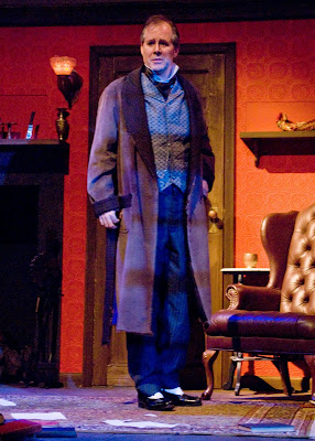 There is always room for improvement. Some of Longenbaugh’s Christmas Carol references are a bit too much, such as Watson’s uncle-in-law, whose name is Tim and who walks with a cane. Tim tells Watson that his father had a wicked miserly employer once, who ultimately became like a second father to Tim after a Christmas Eve of reflection. Also there is a scene in Holmes’ past where he is in love with a young woman, but doesn’t pursue the relationship, and the older Holmes viewing his past regrets it. This scene was another parallel to A Christmas Carol’s story, but it felt really out of place in the play. As well, director Scott Nolte’s staging was at times difficult. Since we visit so many places in Holmes’ past, present, and future, we the audience need some sort of clue to help us know where we are. The stage is set minimally, with the exception of 221b Baker Street, and at times there aren’t enough visual or audio clues to help us understand where and when we are in the story.