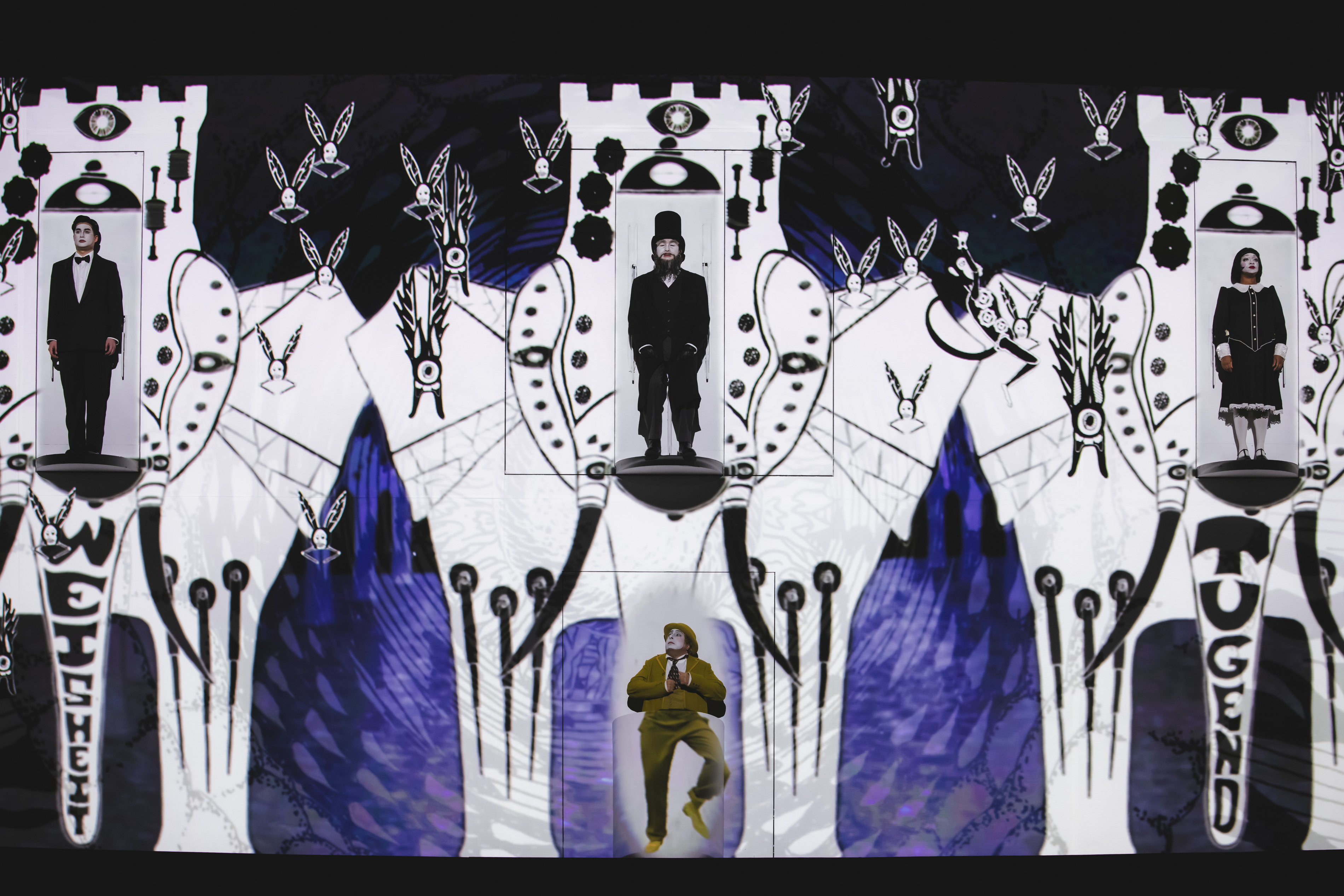 After the show, a Q&A session was held with Papageno (Rodion Pogossov) and conductor Christine Brandes. There, I got some insight into what it was like to be working on a highly technical show. As an actor, Pogossov admits it was a challenge to coordinate and interact with the projection queues. With practice and dramatic body language, his performance is seamless. Staying up to speed with the animation queues is also a concern for the musicians in the pit. These adaptations take immense skill and are just another testament to the uniqueness of this show. Whenever the projection wall felt too small to hold such a powerful moment, opera singers filled in the sides of the stage, stacked on top of each other; this felt like an homage to classic grand choir performances.