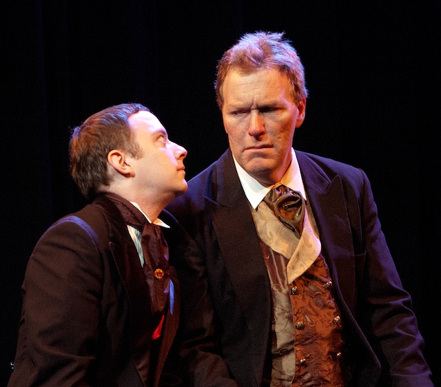 In a damnation of his own making, Jacob Marley finds, much to his chagrin, that the only way to a better non-existence--since he is “not just merely dead, but sincerely, utterly, and totally dead”--is to redeem the one person worse than himself, namely, Scrooge, with a bogle at his shoulder. (To find out what a bogle is, see the show!) At first, he believes that it is impossible, that the old man could never have a complete and willing change of heart; however, as time moves forward, back, and freezes, he finds that the old miser might just have a chink in his shell after all. Conveyed through wonderfully expressive acting, beautiful wording, and impressive lighting, the journey through space, time, and memories is a superb visual spectacle.