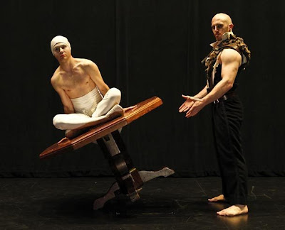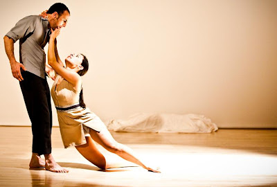 Lack of narrative was certainly not an issue for tEEth, which brought a piece entitled Home Made. It was an approach that I had certainly never seen before. The stage was taken up by a white sheet, under which two dancers twisted and played, sensuously and innocently. They passed off a video camera and flashlight, and the images were simultaneously transmitted to a screen at the back of the stage. The mood was intimate, not voyeuristic; it was a window into the private world that exists only between two people in love. We watched them play together, lie together, and dream together. Not once was the candid exploration awkward or uncomfortable, which is certainly to tEEth’s credit; they masterfully took a world that survives only behind closed doors and let it shine. But when the sheet was drawn back, the dance became violent and fearful, layering on all of the insecurities and trappings of public life. Sinking further and further into violence, it ended miles away from where it began, and this was its crowning glory; layer by layer, tEEth was able to take the audience on a journey that was not only compelling, but that everyone watching could relate to.