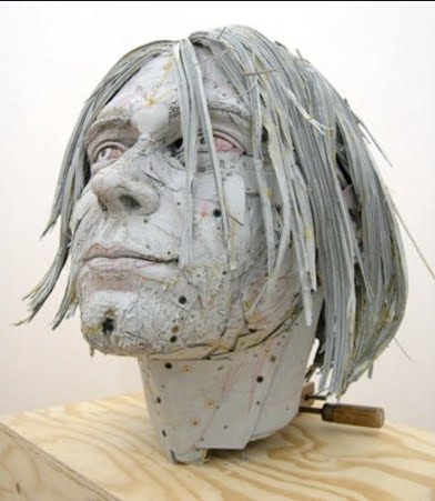 Dancing in Peckham, 1994, Gillian WearingThe next gallery feels appropriately less personal, displaying the outsider’s portrait of Cobain’s life. Kurt the celebrity is portrayed through various magazine clippings and paintings centered around the idol. Friedrich Kunath’s 6’x6’ painting recreating a notebook filled with Kurt’s pencil sketches depicts Kurt the Artist. And Gillian Wearing’s silent video of herself dancing to “Smells Like Teen Spirit” and subsequently Gloria Gaynor’s “I Will Survive” breathes elements of Kurt the musician.The final gallery is a memorial. A slideshow of Aberdeen by Rodney Graham depicts the place of Kurt’s birth, and painter Jordan Kantor’s Greenhouse recreates forensic photos of the place of Kurt’s death. In the middle of it all lies the exhibit’s Mona Lisa. Scott Fife creates a cardboard bust held together by screws and glue that perfectly resembles the rock star’s blank stare out into the open space, calling you to stare back.