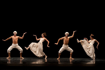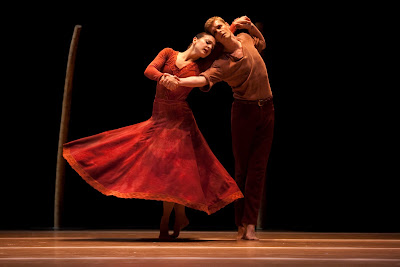 The dance that follows intermission, Jardí Tancat, choreographed by Nacho Duanto, starts off with no music. The dancers have to be in sync with only the beats in their head; there are no musical cues to help them. This I found pretty amazing. The dance is a story about the people who work on the land praying to God for rain to come. Choosing this style of inspiration for a dance tends to be a hit or miss but, in this case, the clever choreography communicates the story clearly.