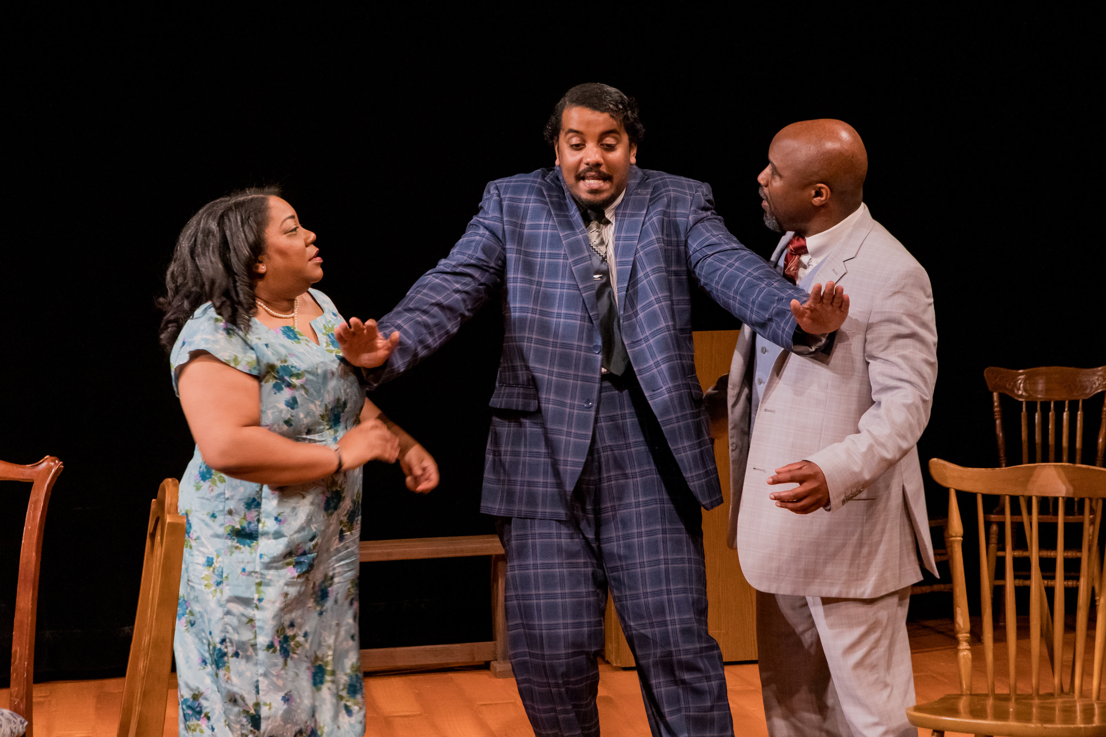 Trouble in Mind tackles many compelling and thought-provoking dilemmas: notably, the morality of retaliating against discrimination if it means risking coworkers’ jobs, and the topical issue of handling microaggressions from higher-ups in a professional setting. The play presents lines that feel very modern, such as the prevalent white self-victimization or the director’s avoidance when it comes to the topic of racism. Jacob Tice’s performance of this discomfort effectively makes his character’s unspoken biases obvious; his initial behavior can be chalked up to embarrassing egotism, but as the play progresses, his racist antagonism becomes more apparent. The driving reason behind why Broadway barred Trouble in Mind in the ‘50s was due to Childress’ resistance to change the ending, which was thought too challenging for audiences; this ironically reflects a critical monologue in the play that addresses the limits of progressive ideas that mainstream media allows, stopping development before it says something substantial.