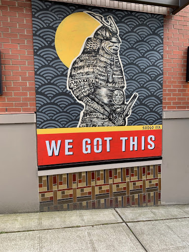 Shogo Ota is an artist whose murals and designs have appeared across the city and world, many have been much larger in scope than this. One thing they all have in common is the attention to detail. The textures in this mural are rich and dense. The shift from warrior, to clouds, to sun, is so striking, and yet it all seems so cohesive. What is “This”? Perhaps it's what our hero is gazing at intently. They seem so prepared, so fearless of what is ahead of them. This mural assures us that we can be fearless of what is ahead of us, too. “We Got This,” indeed.