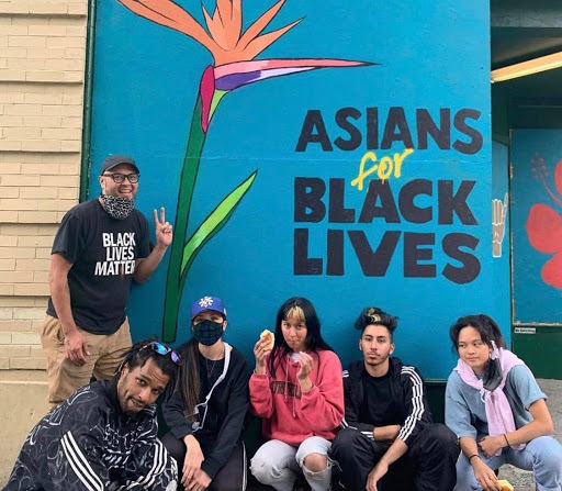 This is a lovely mural in the International District, and the lovely group of people that worked on it. Many murals made since large-scale protests began have focused on supporting Black Lives Matter, and other organizations and individuals, in the ongoing fight for equity. When many people see a large corporation, or some kind of city government put up a Black Lives Matter mural, it leaves a bad taste in their mouth. This is because of the performative nature of a government which gives it’s officers qualified immunity, or a company which refuses to pay its employees a living wage, claiming to stand with a movement largely against those things. However, small businesses do not have the control over a large group of employee’s lives, or the means to end qualified immunity and defund police departments. So showing solidarity and creating a sense of simpatico for those most affected by these issues, is meaningful.