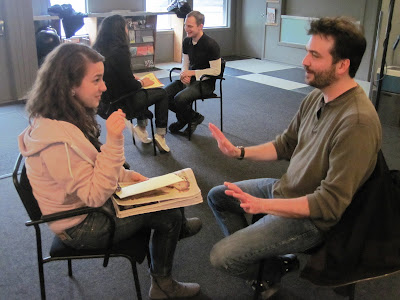 David, the banjo player, described his adventure in the bathroom, where he stuck his hand down the bathtub's drain, and pulled out a large hairball and then disposed of it. He also told me about his favorite musical artists, the Talking Heads, and the Anchors. Rob depicted his search on craigslist for a car. He also mentioned that he is a Mercer Island High School Alumni, and in fact, knows comedian Joel McHale! Evan, who works at the University of Washington, explained how he had to switch the plane tickets of some student earlier that day. He also noted that he is not a native Seattleite, but actually hails from Iowa. Kirk told me of the poor heating conditions in the rehearsal space/art studio that the band uses. As we began to talk about other things, he declared that Gross Pointe Blank is his favorite movie.