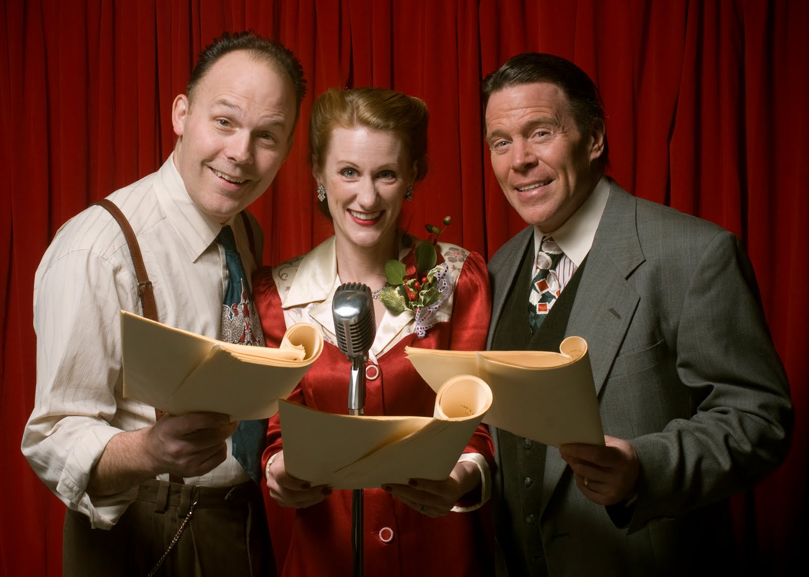 Mark Lund, Candace Vance and Grant Goodeve in Taproot Theatre's It's A Wonderful Life: A Live Radio Play. Photo by Erik Stuhaug.