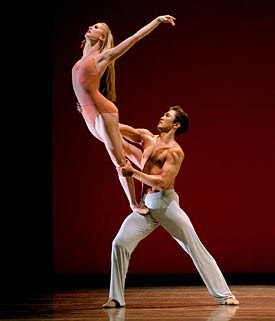 This is a retrospective on a 38 year-old-artist. Christopher Wheeldon, though young, is already beyond his “promising” phase. Using a vocabulary of motion familiar to the classical tradition, he reveals the possibilities of dance beyond the prancing clichés that are unfortunately associated with ballet. Just as pioneering biologists in carefully calibrated labs first uncovered the secret activity of our own DNA, Wheeldon uses powerful dancers to circumscribe dynamic, wheeling helices on the boards. His works build on elemental motions and animalistic impressions to vividly illustrate the accompanying music.