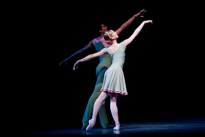 Pacific Northwest Ballet soloist Chalnessa Eames and corps de ballet dancer Josh Spell in Paul Gibson’s The Piano Dance. Photo © Angela Sterling