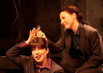 As the pair struggle to find meaning, they seem to be followed by a zany acting troupe whose dramatic Lead Player, acted by Heather Hawkins, seems to have it all figured out. Her troupe specializes in acting out death, rolling with the punches, and simply being. While Guildenstern has trouble accepting their views, her arguments with The Player about death being some of the most humorous and thought provoking of the play, Rosencrantz seems to be content to go right along with The Player.
