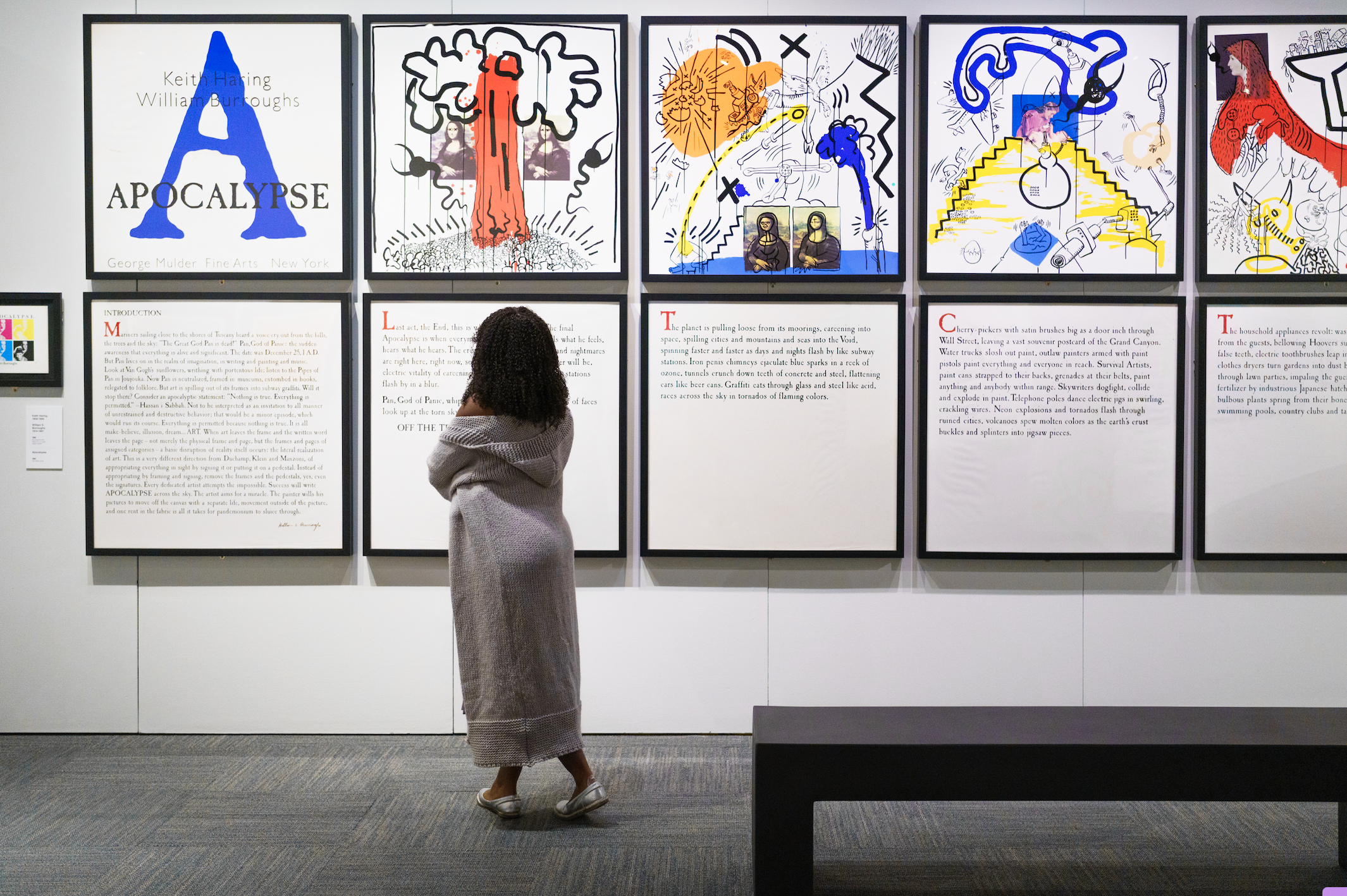 However, the exhibit can feel cluttered at points. There are a number of sequential wings that further Haring’s story: his final works before he died, a room dedicated to the pop-up art shop he had set up, and an entire section devoted to his remembrance and legacy. Along the way, it seems the museum runs out of room and has to double up pieces, like with Apocalypse, a beautiful smorgasboard of color, catastrophic imagery and a broken story, courtesy of collaborator William Burroughs. The piece takes up the entire right-side wall in the room, and invites the most viewers throughout the exhibit, yet work flanking Apocalypse doesn’t match the mood of the piece or work with the placement. The most jarring instance is the juxtaposition between Apocalypse and selections from The Valley, another Burroughs contribution. The Valley is a more delicate collection, with thin-lined etches that depict darker, more detailed imagery than Haring’s work. However, placing them next to Apocalypse effectively relegates smaller collections to the duty of poorly placed palate-cleansers. This pattern is mostly before the end of the exhibition; some selections share walls in ways that aren’t entirely meaningful, with either pieces from different years, or pieces that don't mesh together.