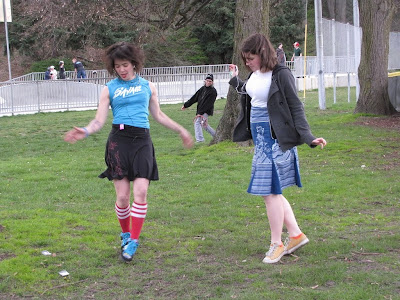 A Glimmer of Hope or Skin or Light is an innovative, interactive new work from Seattle Magazine's 2007 Dance Artist of the Year, KT Niehoff and her company, Lingo Dance. 30 people, including two members of the Teen Tix reviewer corps, Anna B and Mykaila O, have been chosen to receive a custom made solo from one of the Glimmer cast. They have all filled out a questionnaire designed to find out who they are: driver or passenger? sweet or savory? what items are currently in your pocket? what is the last thing you lost? what is a Seattle location you love? Glimmer cast members are using the answers to tailor-make a performance for each person to watch. The dances are personal but performed in public locations throughout the city, available for any and all to see.