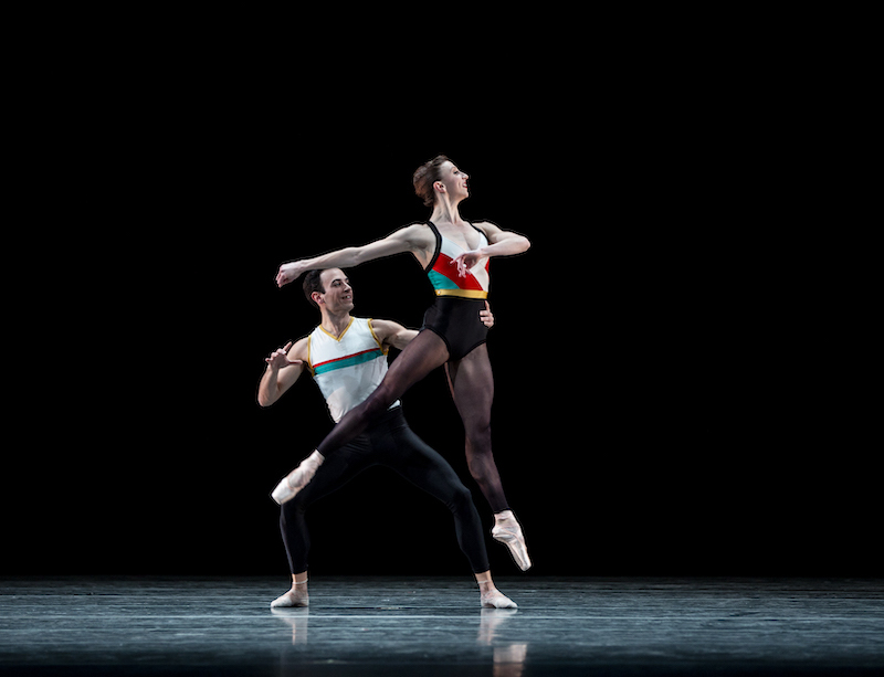 The last piece of Director’s Choice was "In The Countenance of Kings," choreographed by rising star Justin Peck, and written by Sufjan Stevens. Despite its Shakespearean-esque title, the piece was clearly aiming for a more modern feel. The piece started out relatively simply, with a small group of dancers huddled in center stage, bathed in a soft white light (lightning designed by Brandon Sterling Baker), and wearing white, blue, green, and red tank tops with black tights reminiscent of 80s workout videos (costumes by Ellen Warren). The music was soft, quiet, and mostly comprised of violins, xylophones, and piano. About halfway through, all except for two of the dancers exited, and the music suddenly shifted. The tempo picked up, cowbells and brassy trumpets erupted, and the previously still dancers shifted into a tango-like back and forth, before settling back into their no-less impressive classical routine. The lighting shifted from soft to a row of nearly blinding lights, reminiscent of the Edison light bulbs that used to line stages in the 1950s. Some of Peck’s choreography evoked mirrors, with dancers working in pairs to mirror one another, an effect which was quite marvelously pulled off.