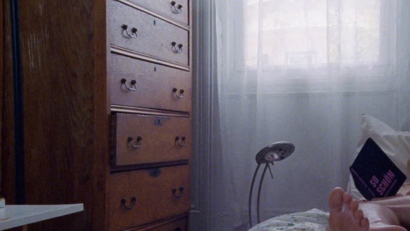 The film renders the viewer a fly on the wall as five beautiful—or let’s say pretty—androgynous queers (Franz, Tonia, Ericka, Helmut, and Paul) make coffee, sleep together, and talk in their enviably-decorated apartments. It felt like approximately half of the film was panning shots of interior decorating: immaculate white linen curtains, pink mood lighting, blurry polaroids on the wall of genderless neon bodies in motion. A brief shot of a mug printed with “ASS IS THE ONLY FORM OF ETHICAL CONSUMPTION UNDER CAPITALISM.”