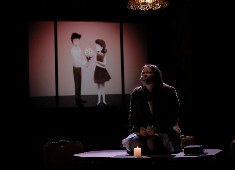 The play uses animation to express memories of the past that are simultaneously told by Christine, a mourning 13 year old girl rebelling her new parent, driven by paranoia and vengeance for her deceased mother who died two months prior. This visual is a new and creative feature that brings an exciting vibe to theater. It would have been interesting to see the actors act out the flashbacks of the past, the animation did not take anything away from the story or interest of Christine as the physical acting might have. Especially if they wanted to keep the image of Elle, the deceased mother of Christine, a mystery. Overall, Feathers and Teeth is an exciting experience sprinkled with light humor, creepy mood changes, and new-age visuals that keep audiences talking days after seeing it.
