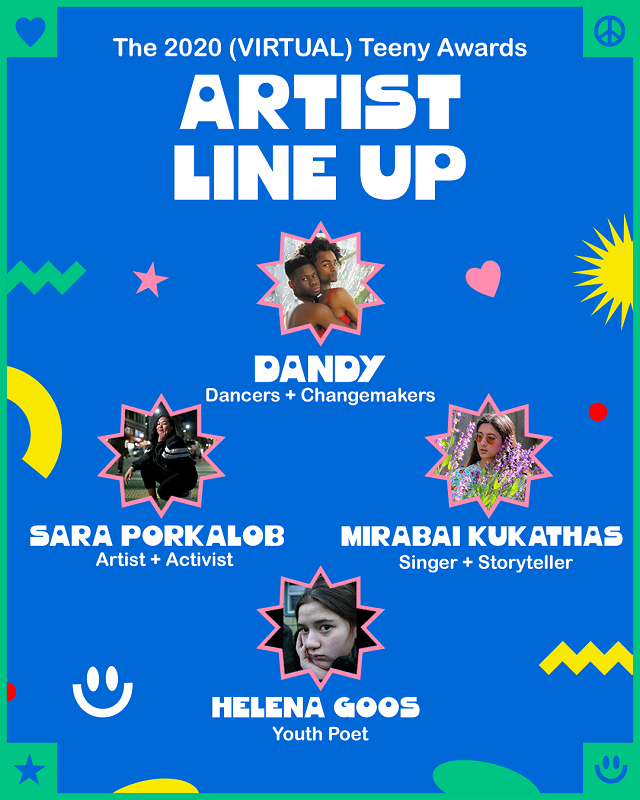 This year, the Teeny Awards show was streamed on YouTube and a couple of us teens got to see the awards announced in a Zoom watch party, so we could all celebrate the winners and drink our Sweet Sixteenys! During quarantine, there aren't always a lot of chances to meet new people, so it was refreshing to have that during the two days of the Teeny Awards. People dressed up, (I wore a tiara in true Sweet Sixteen fashion), and we were treated to performances by Mirabai Kukathas, Helena Goos, and many more. The dance group DANDY hosted the show, bringing their lively and fresh performances to our screens.