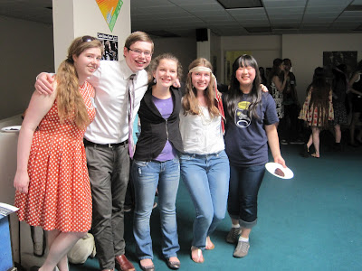 Hey, we had a party at the Children's Theater. And, guess what? Children's Theater? Not just for the children, it turns out. HELP, currently playing at SCT, is a Dutch import about the Beatles' early, teen years growing up in Liverpool, England. Audiences have been raving about the highly teen-centric show (our reviewer, Jamie K., called it "one the of the best performances I have ever seen." Read his whole review here.) So, on Saturday, April 21st, SCT threw a little pre-show party just for Teen Tix members called Sixties Time Machine Beatlemania Party.