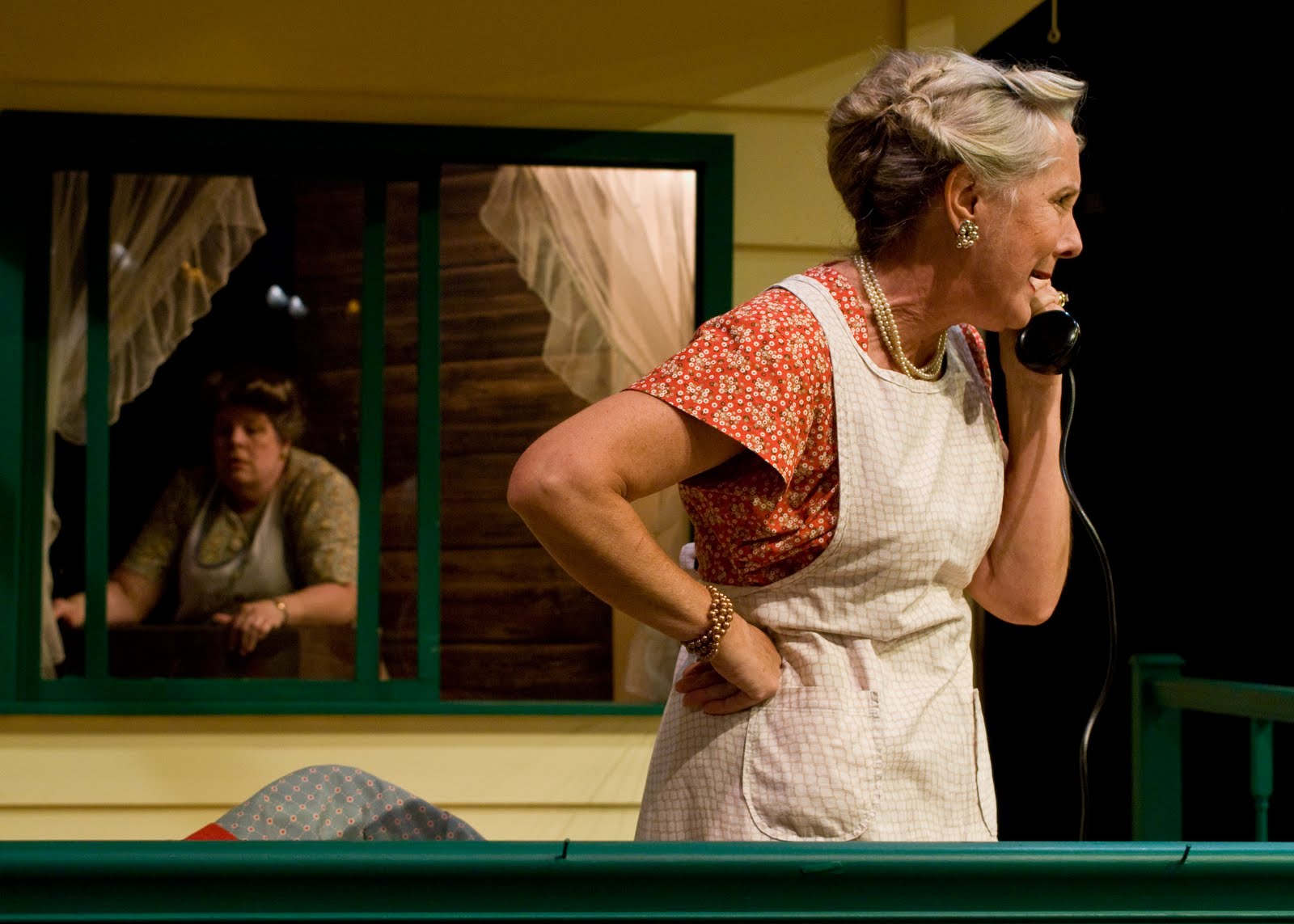Setting the scene and dominating an entire wall is the façade of the back of Laura Lee’s house, which places the bulk of the action in her backyard. A porch, table, and flowers all become incredibly versatile props, seamlessly integrating themselves into the characters’ actions. The telephone ringing constantly in the window completes the setting, becoming a vital information hotline between the women and the rest of the small town. However, the incredible scenery is nothing without the impressive acting done by everyone involved. Each one of the five southern ladies has a bold and unique nature, and all of their unique personalities are definitely done justice in this show.