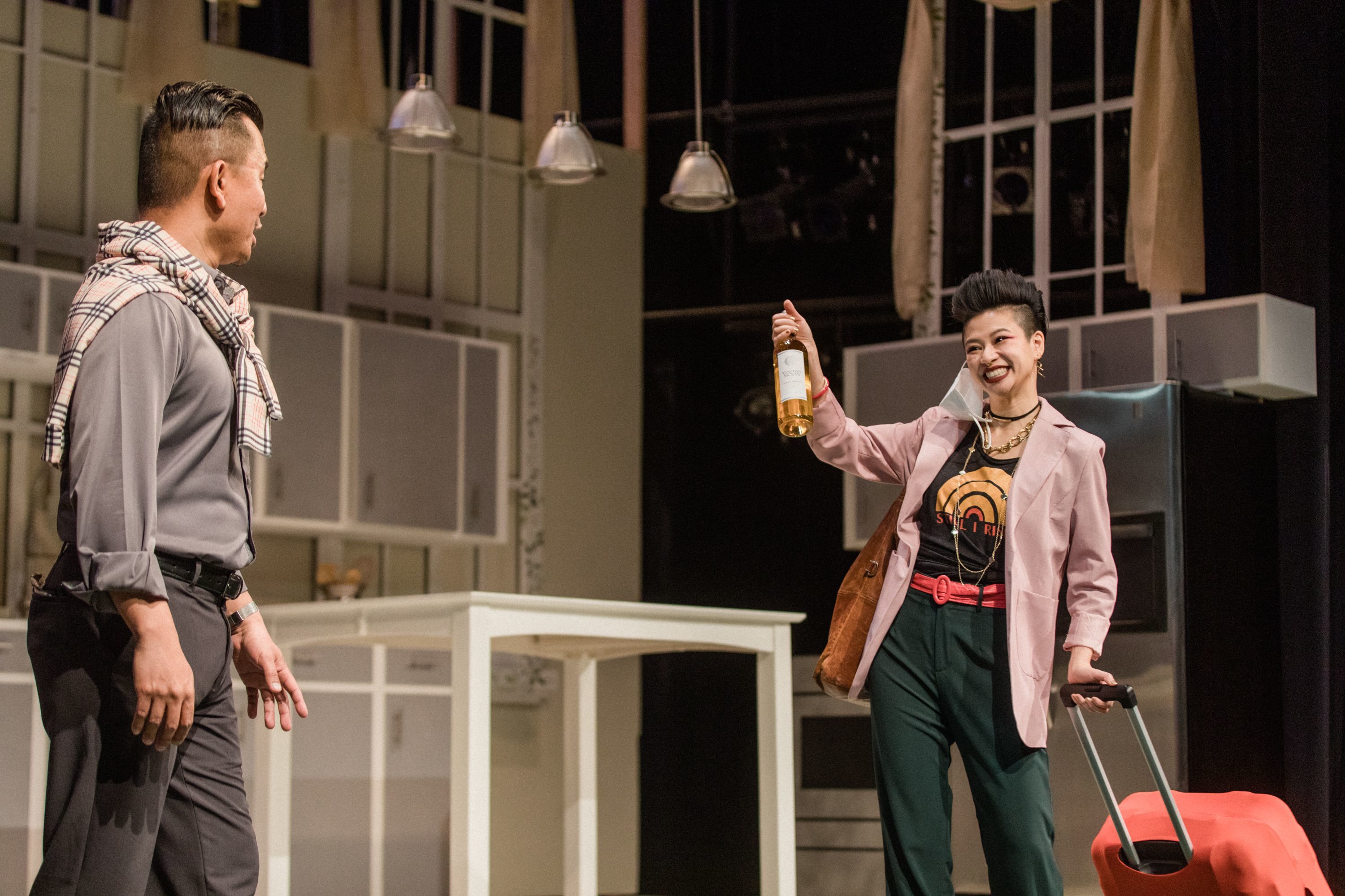 Charlotte being Asian in-story also creates some confusion, and makes it harder to suspend one’s disbelief when viewing a white family portrayed by Asian actors. To clarify this dilemma, the script includes a handful of heavy-handed jokes–the matriarch of the family refers to people of color with disdain, and each member of the family misidentifies Charlotte’s ethnicity. However, this results in the jokes feeling forced, feeling more like a family of exceptionally “white” Asian Americans being horrible to another Asian woman in entertainment. Of course that type of story is important to tell, with the model minority myth and class divides being a worthwhile phenomena to dissect, but bypasses the play’s purpose.