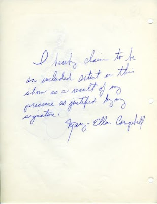 Adrian Piper's Context #7 is pages of a book hanging up on a wall where people are asked to write what they are thinking inside. When I attended, some people said they couldn’t write what they were thinking because someone was looking over their shoulder; while others were brave enough to write love letters in the hopes that they would be read. One person wrote “when you write something you leave a part of yourself.” This person sums it all up; people are writing, singing, creating just to leave a part of them for the rest of us to see.