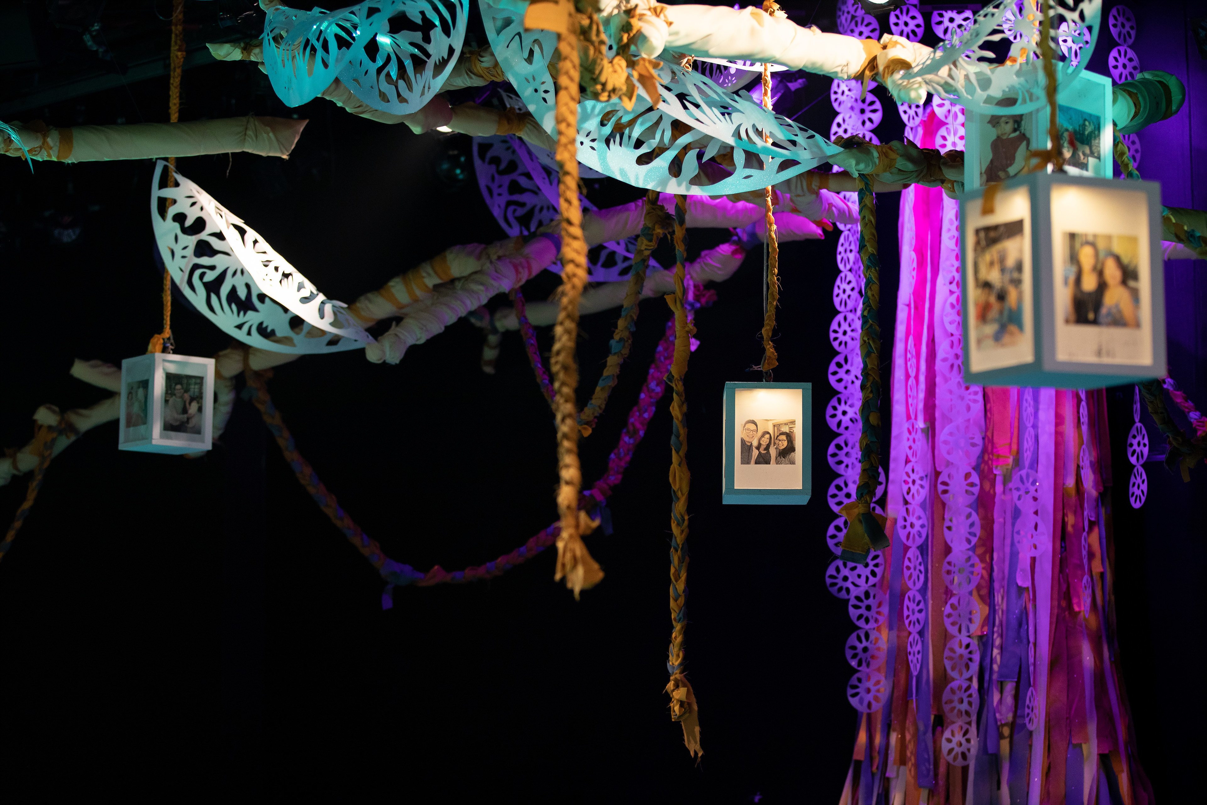 For the premiere of We’ve Battled Monsters Before, ArtsWest transformed itself into a creative fantasyland reminiscent of the chocolate room in Willy Wonka and the Chocolate Factory. However, musical instruments are scattered across the stage rather than oversized candy and while there is no chocolate fountain in sight, a tree composed of fabric and paper towers over the audience. Despite the set’s inherent minimalism, the space bursts with color and creativity, as does the show.