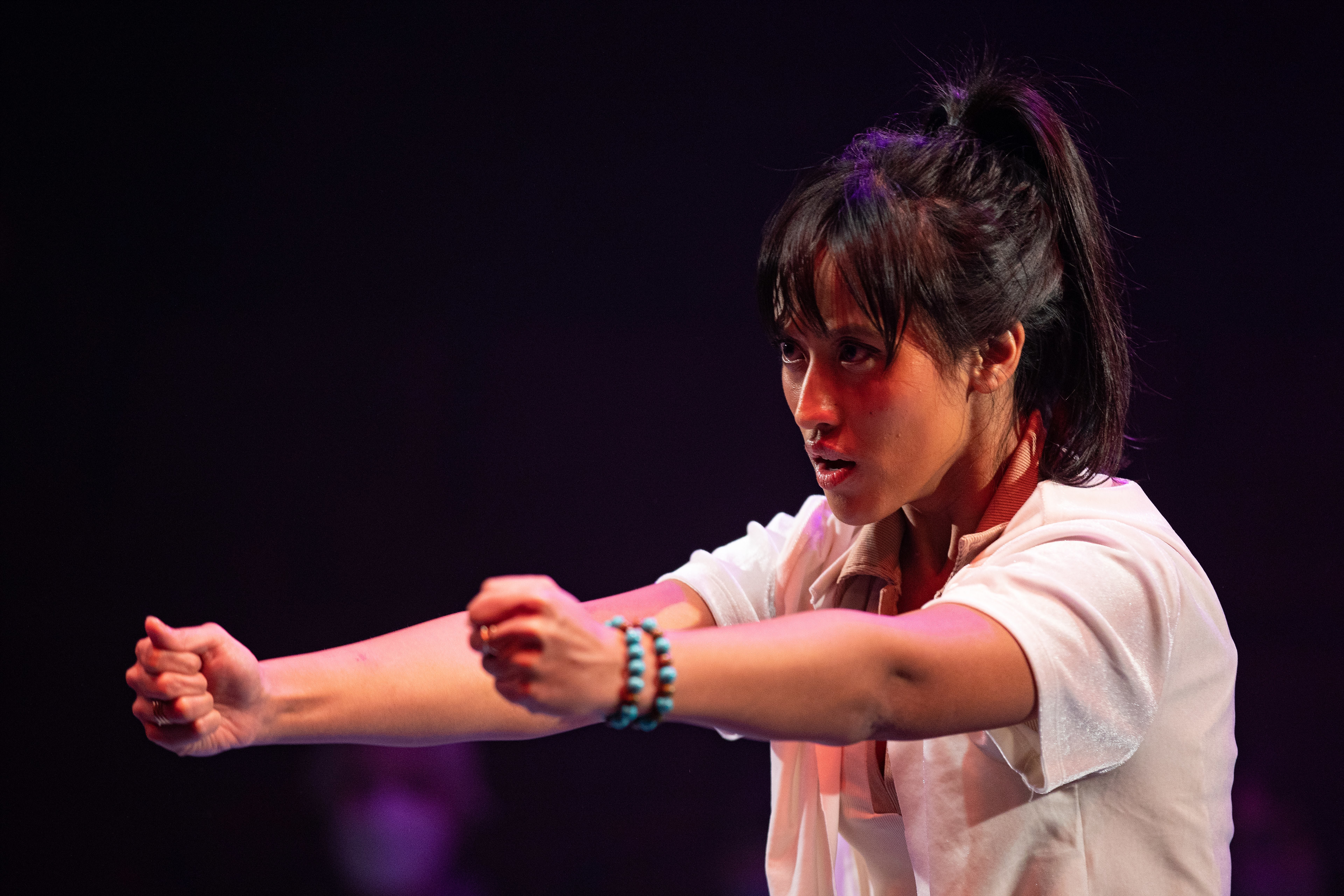 Joining the charismatic Huertas onstage is Rheanna Atendido, a phenomenal vocalist and musical polyglot. Together, the two seamlessly switch between singing, speaking, and strumming thanks to the effortless staging of Matthew Wright, ArtsWest’s artistic director. The show’s strongest moments inventively incorporate the process of creating music as a form of expression, just as dance is utilized in other musicals.